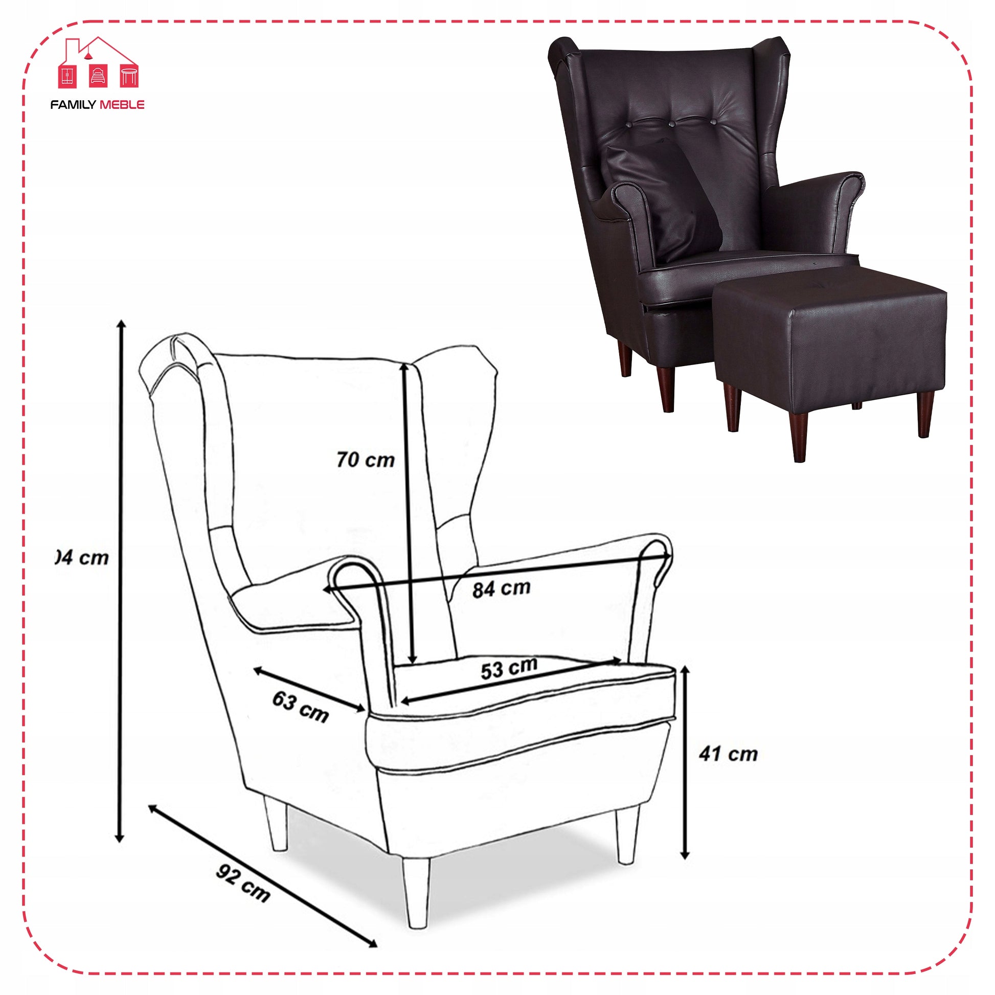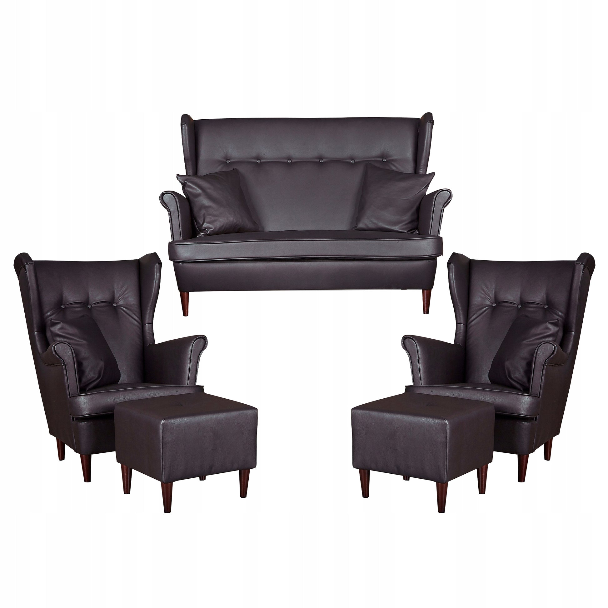Zestaw wypoczynkowy mebli uszak Eko skóra sofa fotele pufy Family Meble komplet
