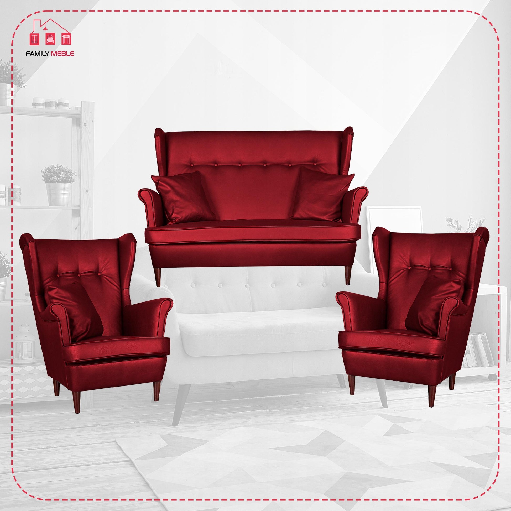 Zestaw wypoczynkowy mebli uszak Eko skóra sofa fotele skandynawskie Family Meble